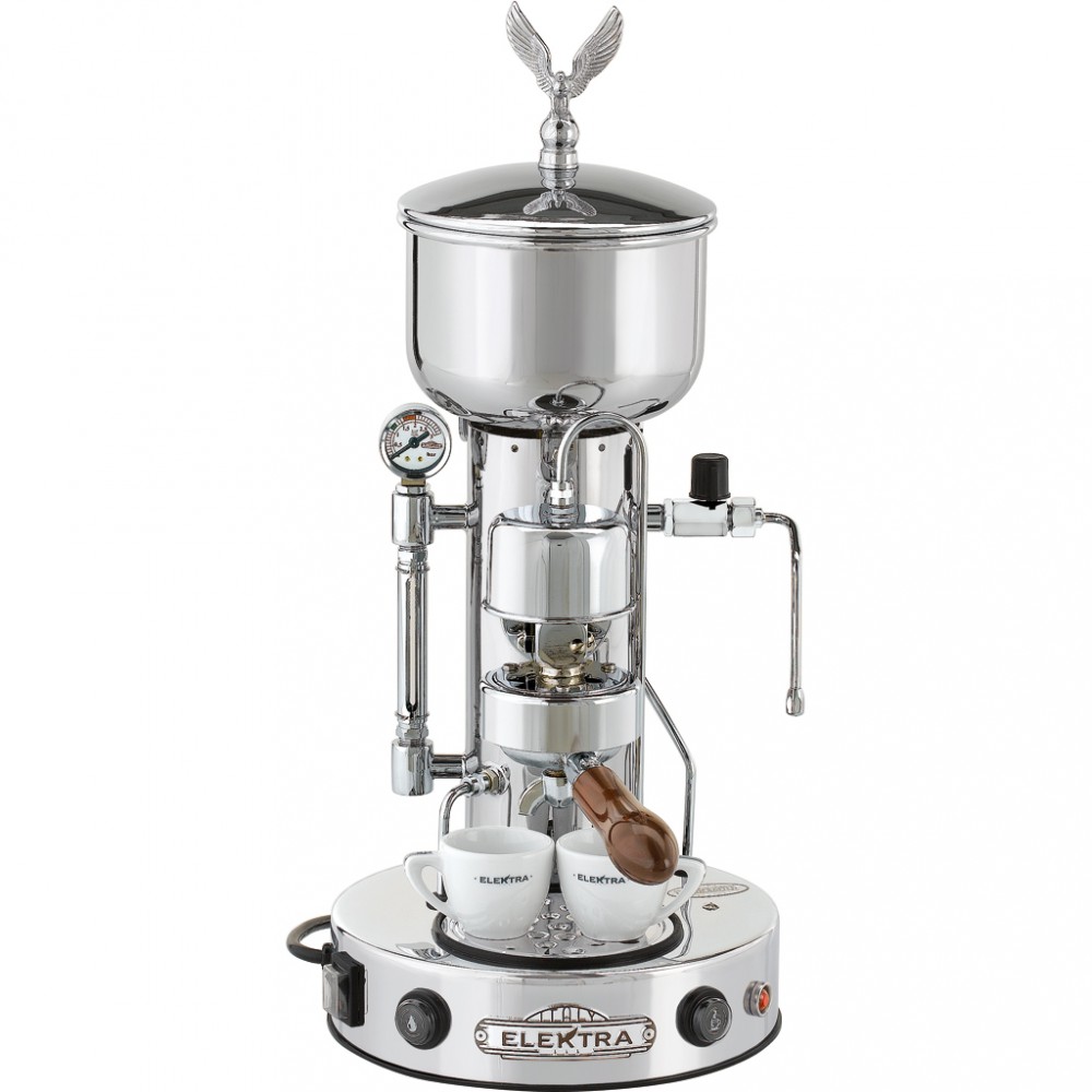 Beskrivelse ELEKTRA MICRO CASA SEMIAUTOMATICA NB! Dette er en bestillingsvare og leveringstiden er normalt på 4-5uker etter bestillingen. Elektra Microcasa Semiautomatica er en helt spesiell espressomaskin. Hverken rør, gruppe eller koker er skjult bak noe skall, men er isteden brukt som en integrert del av maskinens unike design. Dette betyr samtidig at synlige deler på selve maskinen blir veldig varme noe som gjør at ivrige barnehender bør holdes unna. Semiautomatica er en manell maskin i den forstand at brukeren selv må fylle på og etterfylle maskinens koker. Til dette bruker man måleglasset som er vakkert integrert på maskinens venstre side. Her vises vannstanden i kokeren og man etterfyller denne ved å trykke inn en knapp i maskinens base. Dette kan virke tungvindt, men gir også et par fordeler til brukeren som man ikke har på andre maskiner. Høy vannstand gir lite steam og mye vann til espresso. En lavere vannstand gir derimot nok vann til espresso, men masse tørr damp til steaming av melk. Aberet er derimot at man alltid må passe på at det er vann i måleglasset slik at maskinen ikke tørr koker noe som gjør at varmeelementet smelter. Vanntanken på Semiautomatica er på toppen av maskinen under lokket. Dette er enten er kronet av en ørn eller en muranoglasskule. Reservoiret er i stål og er stort og meget enkelt å etterfylle. Gruppen på Semiautomatica er en spesiallaget gruppe av Elektra som er meget bra varmebalansert for en varmevekselmaskin og være. Gruppen står utildekt noe som gjør vedlikehold meget enkelt. På toppen av gruppen finnes en klokke hvor treveisventilen sitter. Herfra går et elegant rør ut og ned i spillbrettet. Gjennom dette slippes trykket ut etter at espressoen er ferdigbrygget slik at man trygt kan fjerne bajonetten uten at kaffe spruter ut. Gjennom røret slippes også rensepulveret når man renser maskinen med blindefilter. Semiautomatica leveres med en dobbeltbajonett med enkelt og dobbelt filter og bakelitthåndtak. Semiautomatica utpeker seg når det kommer til steam. Vi på Cortado har knapt brukt noen maskin som har så tørr og fin steam som på denne maskinen. Samtidig er steamarmen utstyrt med en tre-hulls steamdyse som gir god rotasjon av melken og gjør det lett å lage microskum. Vinkelen på armen er samtidig satt slik at steaming bli en lek. Maskinen har derimot kun en liten bryter på steamarmen som aktiverer steamen. Siden armen desuten blir varm, kan man i starten oppleve at det er lett for å brenne fingrene. Et par forsøk mens maskinen er kald bør derimot være nok til å lære seg teknikken. På grunn av designet er avstanden mellom bajonetten og spillbrettet kun ca 6,5 cm. Dette betyr at store cappucinokopper eller kaffekrus må posisjoneres med litt oppfinnsomhet. Siden dette er en italienskprodusert maskin er den optimalisert for espressokopper og mindre cappucinokopper. Spillbrettet er videre integrert i basen og rommer kun 108 ml. Pass derfor på at dette tømmes regelmessig for å unngå at kaffesøl flyter over på benken og over tid inn i maskinen. Litt silikon rundt skruen under spillbrettet kan være et lurt tips for å være på den sikre siden. Som alle varmevekselsmaskiner blir vannet til kaffebryggingen litt for varmt når maskinen har stått på lenge uten å være i bruk. Det går derimot meget raskt å senke dette på Semiautomatica. Når det er gjort leverer denne maskinen en meget god espresso. Det gode gruppedesignet er skånsomt mot kaffen og får fram det beste fra kaffebønnene. Semiautomatica er en helt unik maskin som kan levere helt unik kaffe. Det er en maskin for entusiaster og de som vil ha noe helt spesielt på kjøkkenet. Samtidig er det en god familiemaskin som raskt leverer både espresso og melkedrikker. Vi advarer derimot mot at deler på maskinen kan bli svært varme. Våre bilder yter ikke maskinen rettferdighet og vi anbefaler alle intreresserte om å stikke innom en av våre butikker for å se maskina. NØKKELFUNKSJONER: Varmevekselsmaskin (alltid steam og vann til kaffe) 58 mm Elektra-gruppe Særdeles tørr steam med 3-hulls steamdyse 3-veis ventil for enkel rensing og bruk Manuell fylling av kokeren 1,9 liters messingkoker (1,5 l ved bruk) 2,3 liters vannreservoir på toppen av maskinen MÅL OG VEKT: Høyde 58 cm Bredde 26 cm Dybde 26 cm Vekt 11 kg |