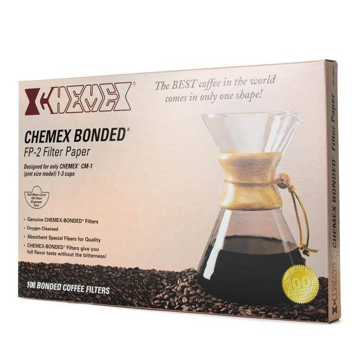 Beskrivelse Chemexfilterne er 20 – 30 % tyngre enn tradisjonelle kaffefilter. De fjerner selv de fineste sedimenter og partikler såvel som de uønskede oljer og fettstoffer. Filtreringen skjer derfor kontrollert – ikke for sakte og heller ikke for raskt. Husk å skylle filteret godt før brygging! Det vil fjerne “papirsmak” fra kaffen såvel som sørge for en jevn ekstraksjon. Disse filterene passer til 3 koppers CHEMEX. Kommer i esker á 100 stk. |