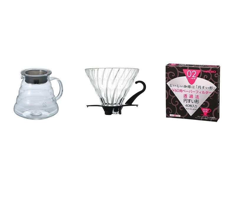 HARIO V60-02 BRYGGESETT I GLASS
