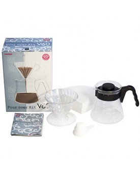 Beskrivelse Fantastisk start-kit, nød-kit, gave-kit, ekstra-kit, til en helt utrolig pris. Hario sin V60 bryggekit i plast. Kit-et inneholder: Hario V60 02 i klart plast Serveringskanne i glass med sort plasthåndtak (700ml) 40 stk filtre Måleskje |