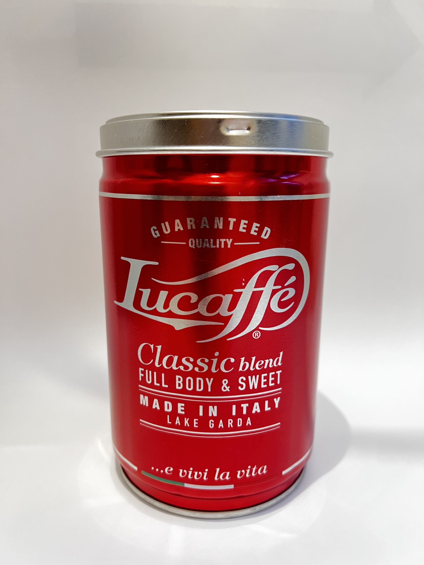 Beskrivelse Allrounderen fra Lucaffe. Passer til alle drikker og har en rund og god smak som ligger midt på treet av alle skalaer. Den er balansert og skiller seg ikke ut med enkeltsmaker. Her er det helheten som teller slik tradisjonen er hos de italienske kaffebrennerne. 80% arabica- og 20% robustabønner. 250g alumuniumsboks |
