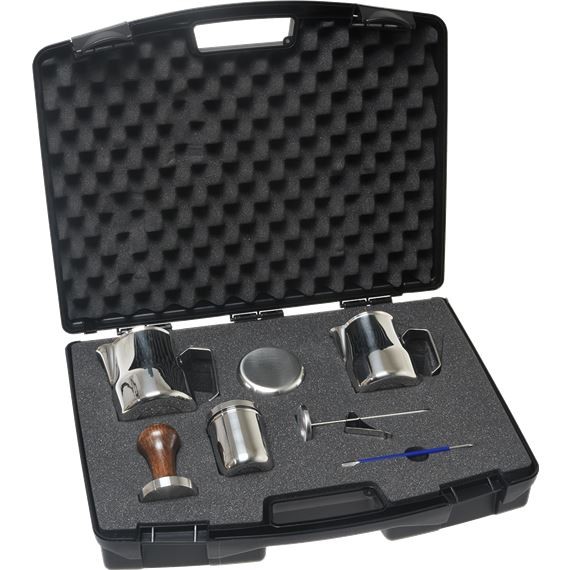 Beskrivelse Barista Kit fra Italienske MOTTA. Kit-et inneholder: 1 x Motta Melkemugge 0.35l 1 x Motta Melkemugge 0.5l 1 x Kakaoshaker (strøsselboks) 1 x Baristapenn til å tegne i melken 1 x Steamtermometer |