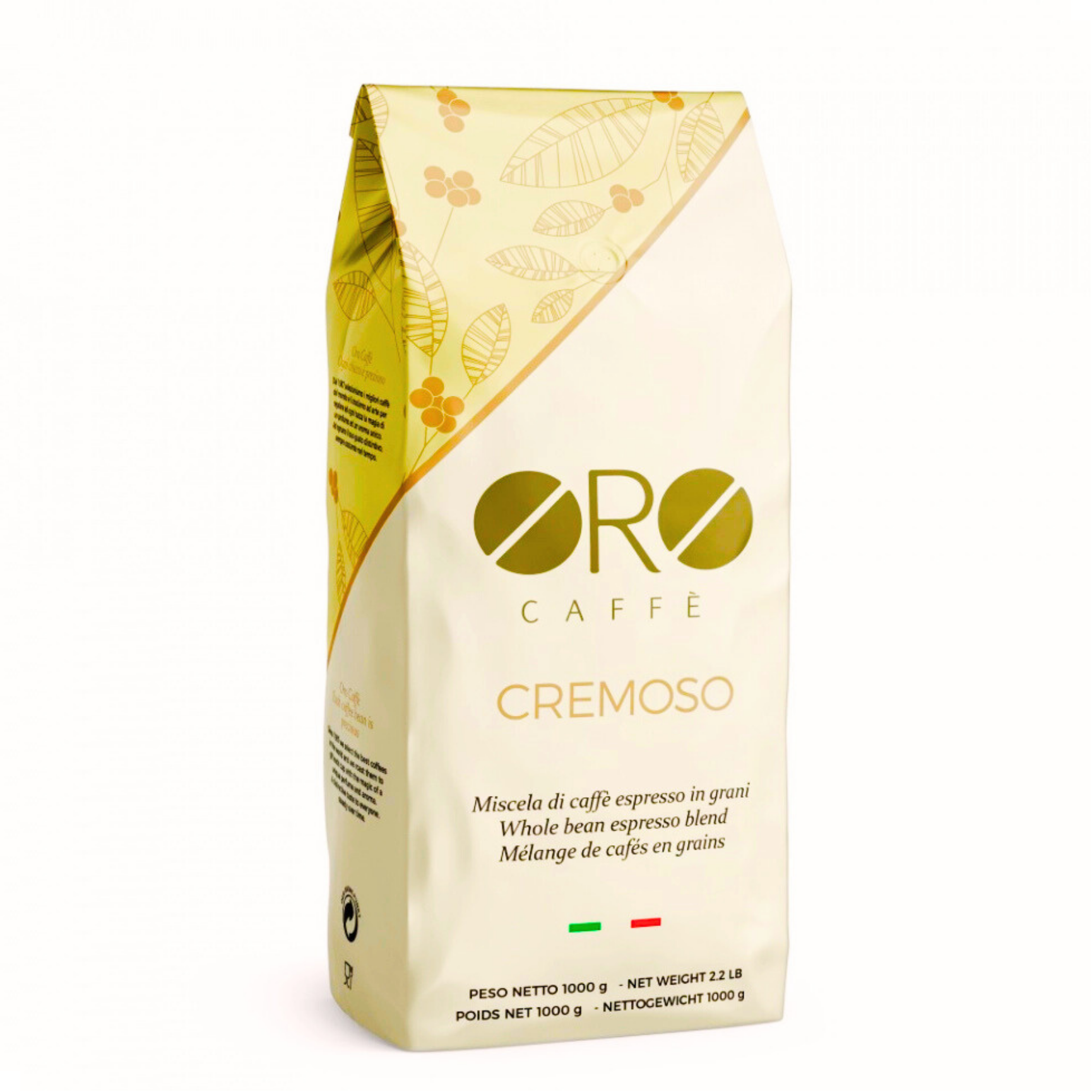 Beskrivelse ORO CAFFE CREMOSO Bønnene i denne "kremete" espressoblandingen kommer fra de beste plantasjene i Mellom-Amerika og Vietnam. Som navnet tilsier får du en tykk og fyldig crema, kraftig smaksprofil med hint av kakao, ettersmak av ristet brød og en lang og dvelende ettersmak. Denne kaffen er ideell etter en god middag og spør du oss smaker den best som ristretto. 1kg pose med enveisventil |