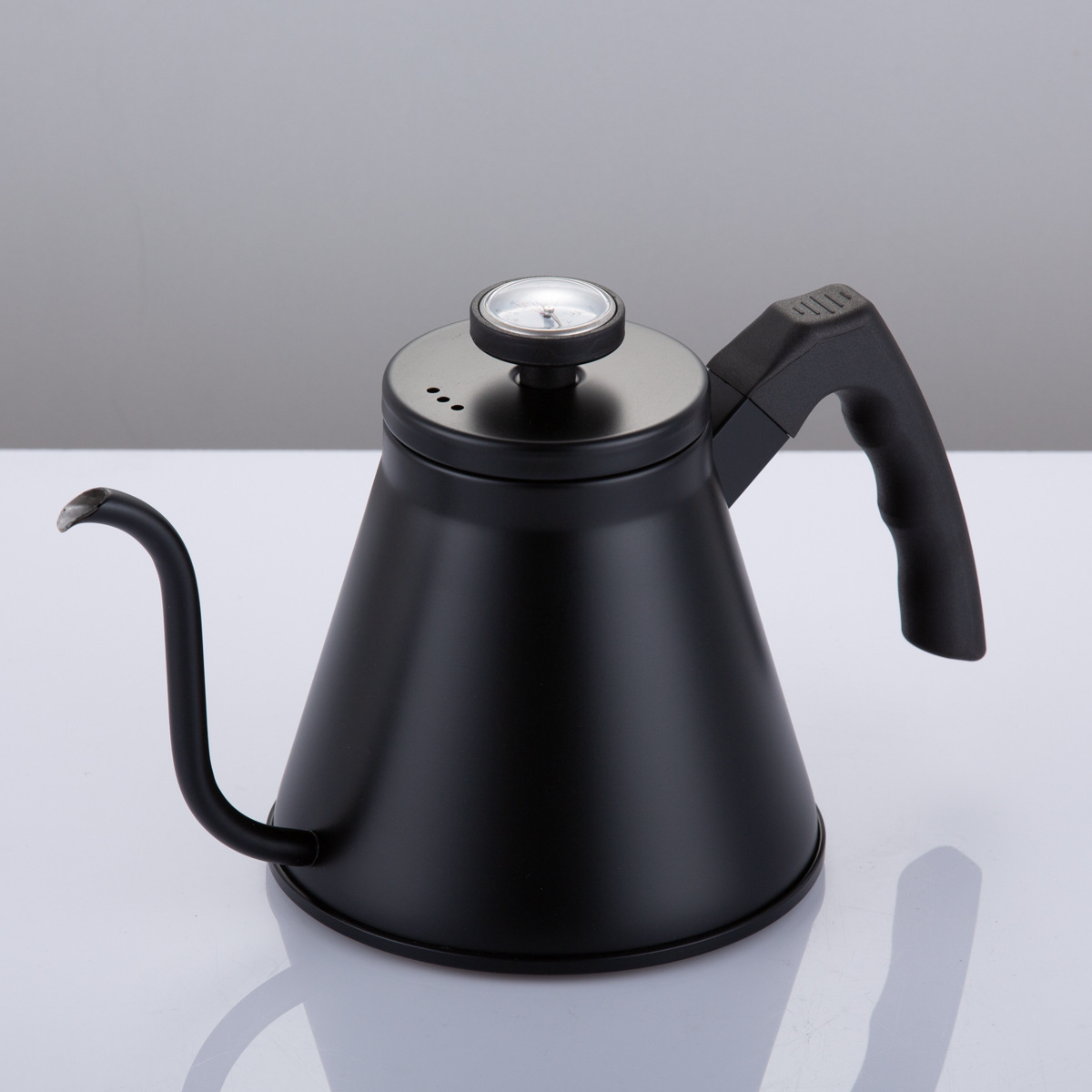 Sort utførelse på 1,2 liter med termometer.